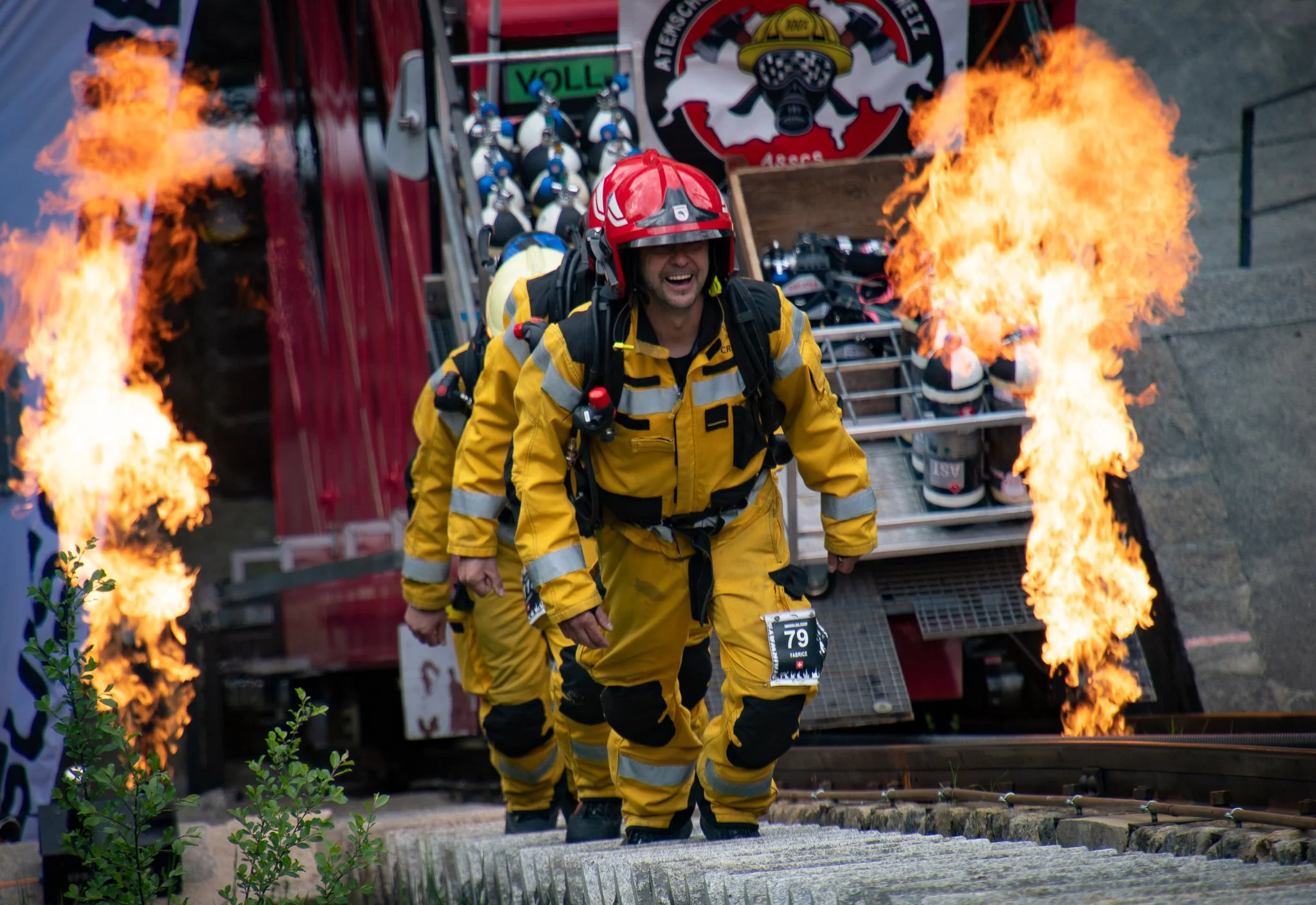 Climb 4’261 steps, at a maximum slope of 89%, and gain 780 meters of elevation over just 1,3 kilometers, fully equipped with your firefighter’s gear.